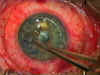 | The LASER is aligned | Clamp is inserted to prevent blinking | The iris is marked for the Keratome | First attempt to seal the Keratome base |